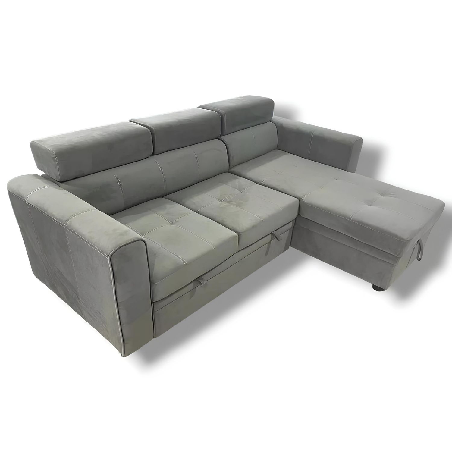 Luca Velvet Corner Sofa Bed with Storage – Universal Side – Pull-Out Double Sleeper with Solid Wood Frame