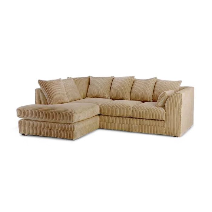 Manny L-Shape Corner Sofa – 4-Seater Jumbo Cord Fabric – Left or Right Facing – Memory Foam & Scatter Cushions