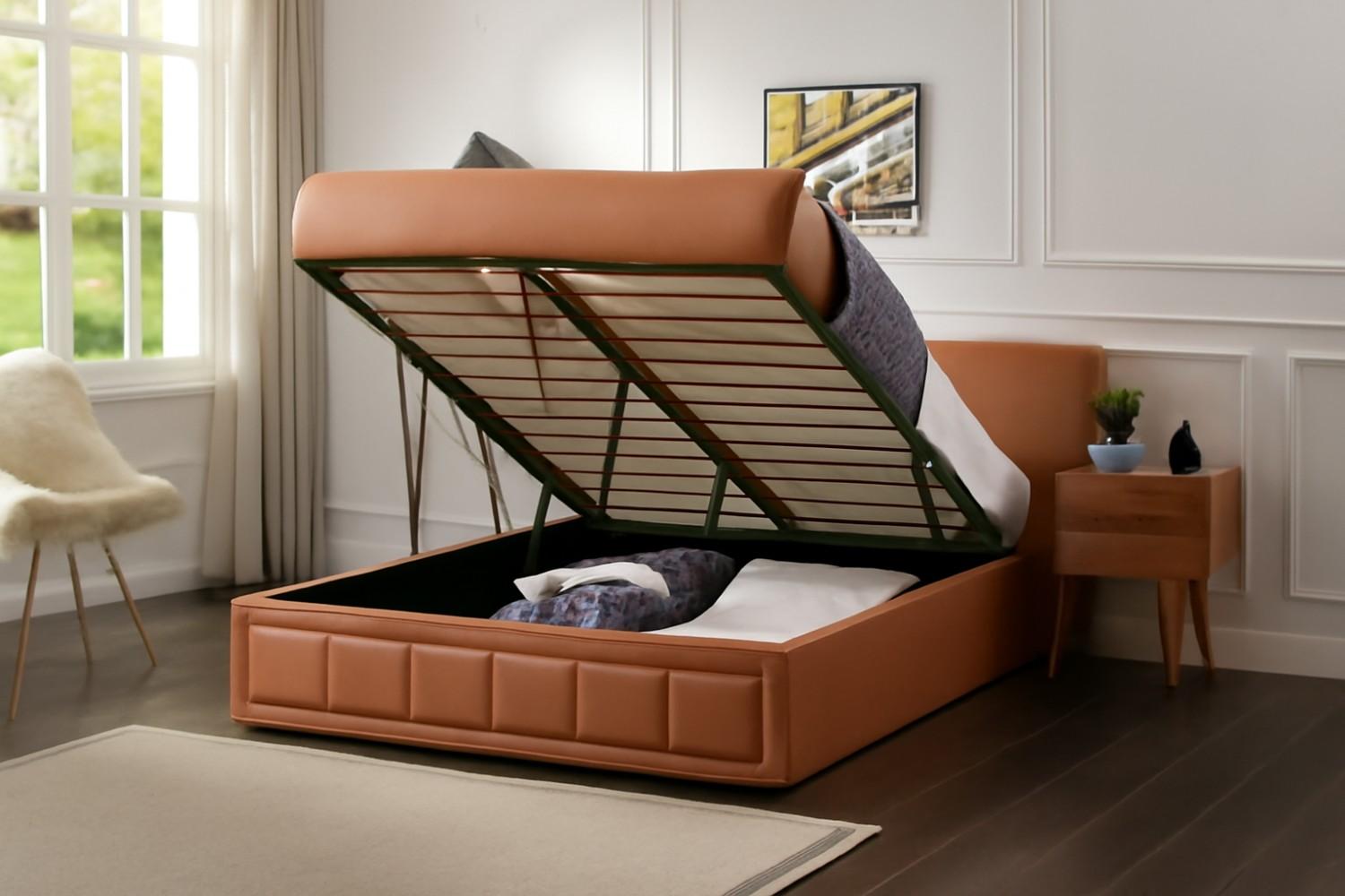 Small Double Leather Ottoman Storage Bed